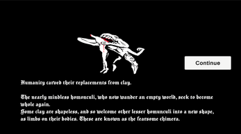 After the age of humanity came the age of the Chimera. Play as a ball of clay attempting to assemble itself from the parts of the monsters it vanquishes.